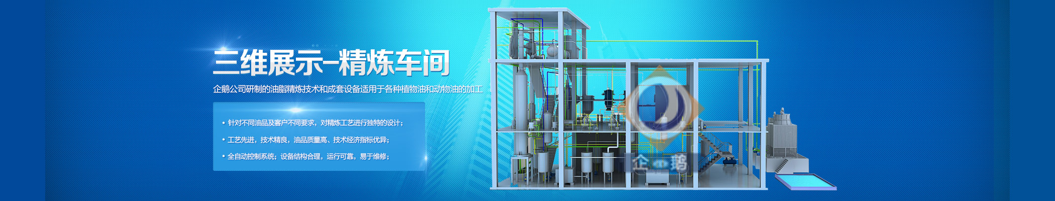 經過實地考察之后,我們選擇和鄭州企鵝合作。企鵝有自己專業的生產車間,能自主生產精煉油成套設備。企鵝在價格上有很大的優(yōu)惠,產品在質量也有保證,值得合作的廠家。